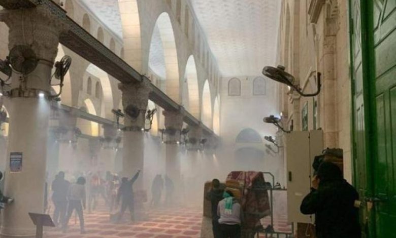 إصابات بالاختناق إثر استهداف المصلين بالقنابل في الأقصى