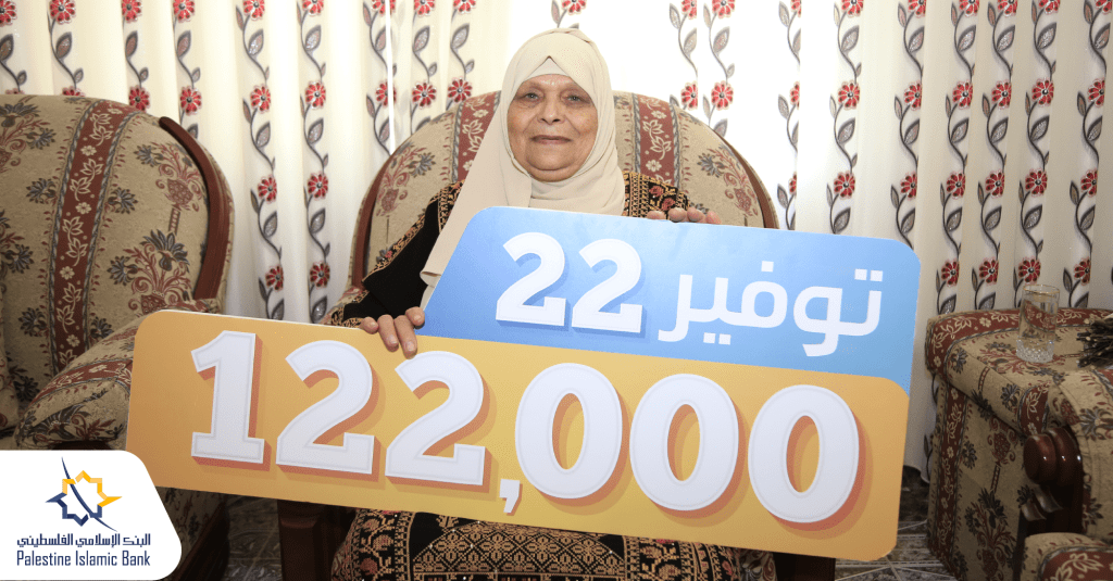 سلم البنك الإسلامي الفلسطيني الجائزة النقدية الثالثة لحملة حسابات التوفير “توفير 22” وقيمتها 122,000 شيكل للفائزة لمياء محمد زُربا من محافظة نابلس.