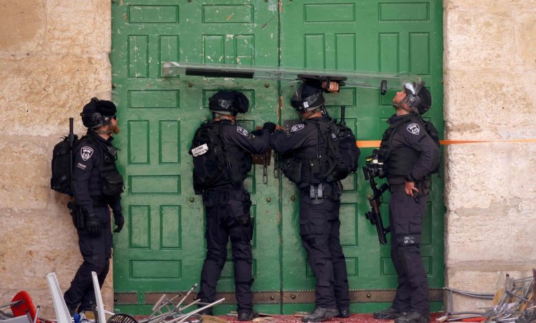 وبحسب ذات المصادر، فإن قوات الاحتلال أغلقت أبواب المصلى القبلي، ومنعت المعتكفين بداخله من الخروج، والذين بدورهم مع بدء الاقتحامات ألقوا ألعابًا نارية وطرقوا على الأبواب لإرباك المستوطنين وتلك القوات التي انتشرت في ساحات المسجد الأقصى.