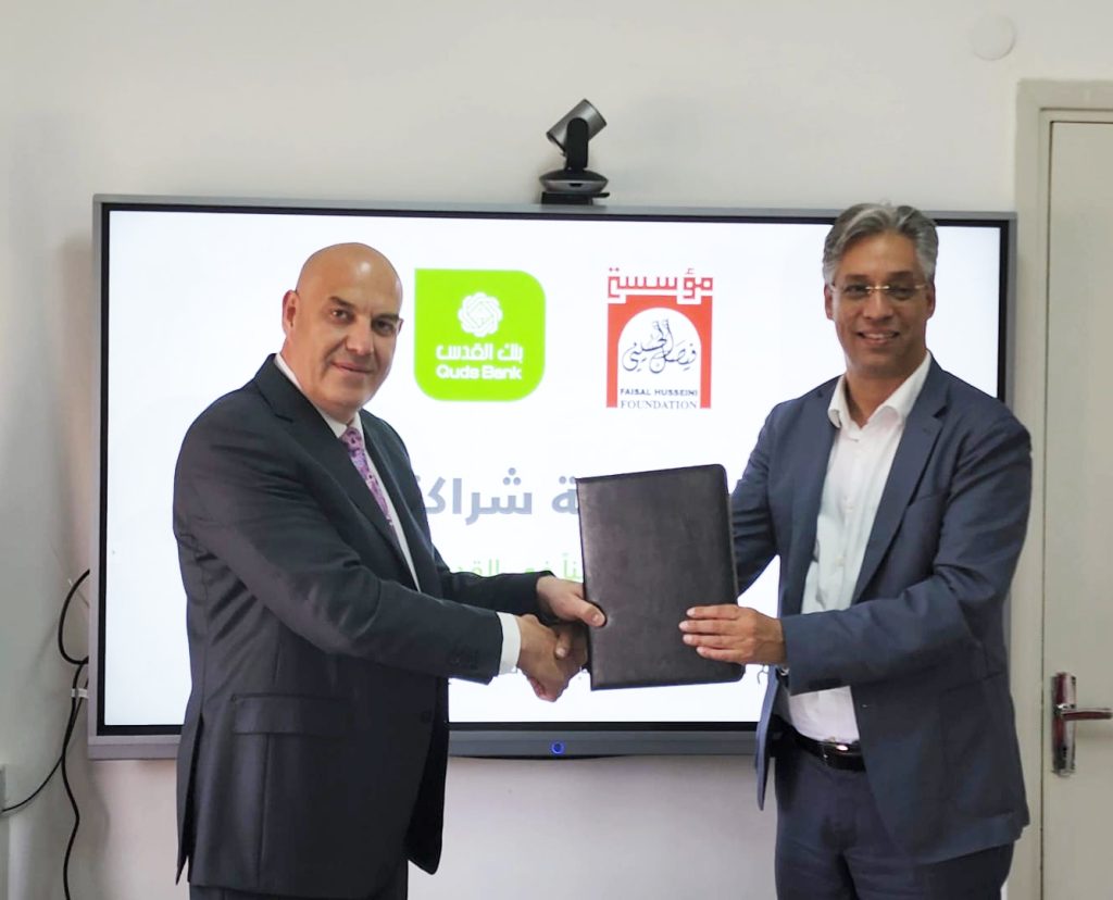 وقع بنك القدس ومؤسسة فيصل الحسيني اتفاقية شراكة، يقوم بموجبها البنك بتقديم تبرعاً لدعم مشروع “التدريب على استخدام أساليب التعليم القائمة على البحث العلمي والتفكير الناقد”، الذي تنفذه مؤسسة فيصل الحسيني ضمن مبادرة اشترِ/ي زمناً لمدارس القدس.