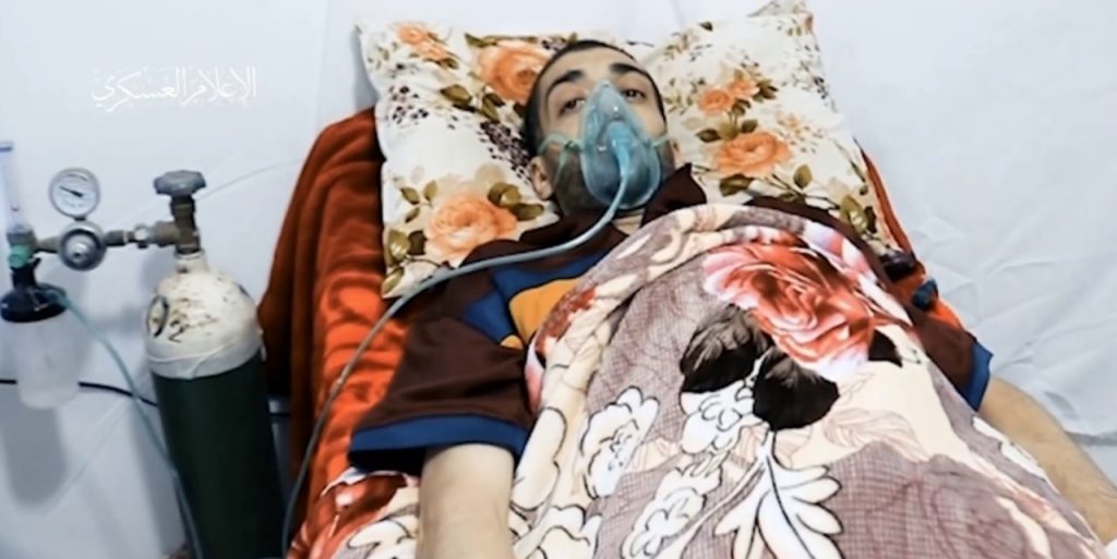 وجاءت المشاهد بعد يوم من إعلان الناطق باسم كتائب القسام أبو عبيدة عن “تدهورٍ طرأ على صحة أحد أسرى العدو لدى كتائب القسام”.