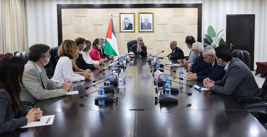 واستعرض رئيس الوزراء أمام الوفد الإجراءات والانتهاكات الإسرائيلية بحق شعبنا وأرضنا ومقدساتنا، من خلال القتل والاقتحامات اليومية، وهدم البيوت، والسيطرة على مواردنا الطبيعية، والاستيلاء على الأراضي، والتوسع الاستيطاني، واحتجاز جثامين شهدائنا وانتهاكاتها بحق الأطفال.