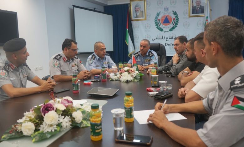 بتعليمات وزير الداخلية اللواء زياد هب الريح اجتمعت اجهزة الامن الداخلي بالمؤسسة الامنية ممثلة بالشرطة والامن الوقائي والدفاع المدني والضابطة الجمركية اليوم الاثنين 25/7/2022 في مقر المديرية العامة للدفاع المدني لبحث مخاطر متوقعة قد تتسبب بها موجة الحر المقبلة .