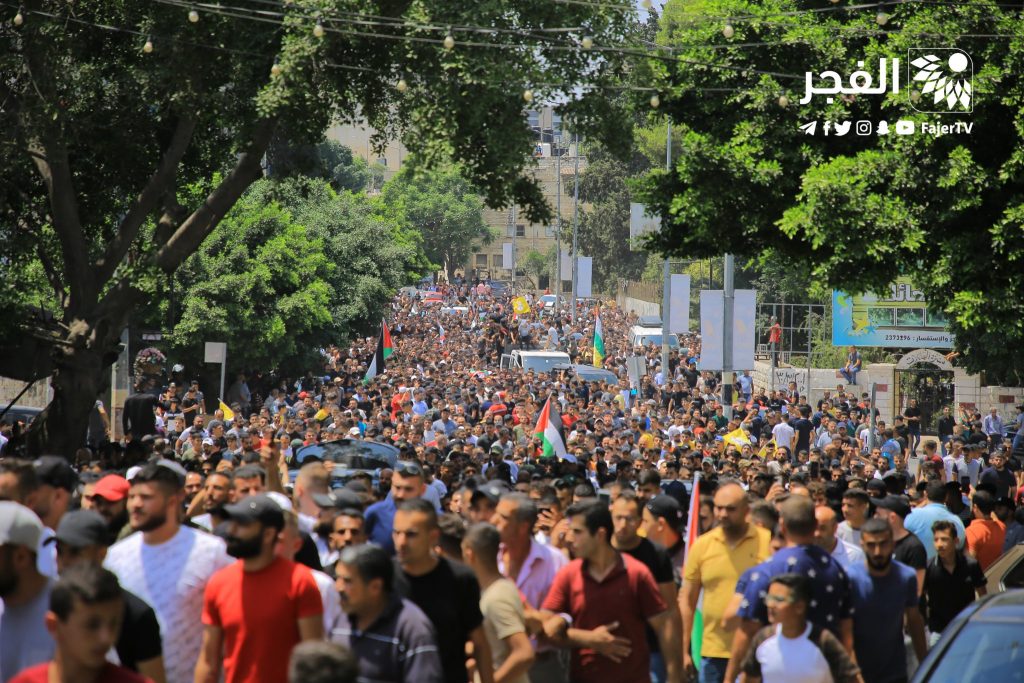 شيّع عشرات الاف الفلسطينيين جثامين شهداء نابلس الثلاثة بينهم المطارد ابراهيم النابلسي، الذين ارتقوا صباح اليوم عقب محاصرة منزل وتفجيره في البلدة القديمة بنابلس.