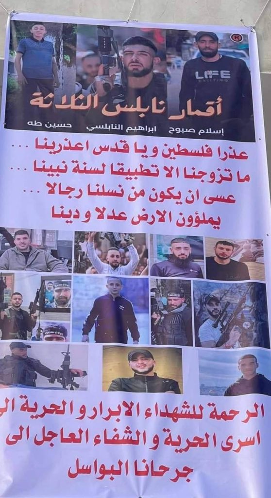 عُرس فلسطيني في دير شرف البوم الجمعة سيكون فيه حاضر ارواح اقمار نابلس الثلاثة الدين اغتالتهم اسرائيل في عدوانهم السافر على نابلس ، هكذا سيكون عرس أحد ابناء قرية دير شرف مساء اليوم ليكتبوا على بوستر كبير وضخم ما يلي : في كل مناسباتنا الغائبون جسدًا الباقون دوما روحاً وحباً شهداءنا وابطالنا الابرار يا من نستحضركم دوما في كل ما يلمس ارواحنا ويكابد شغف حياتنا هكذا يؤكد شعبنا الفلسطيني بتخليد شهداؤنا الذين يغادروننا جسداً لكن اراوحهم باقية محلقة في سماء الوطن ، سيبقون ناقوس يضيئ درب التحرير والاستقلال الكامل ، لن تكسروا شوكتنا وسنبقى الحاضرين الغائبين لكننا اصحاب الأرض والبقاء لنا والاحتلال الى زوال .