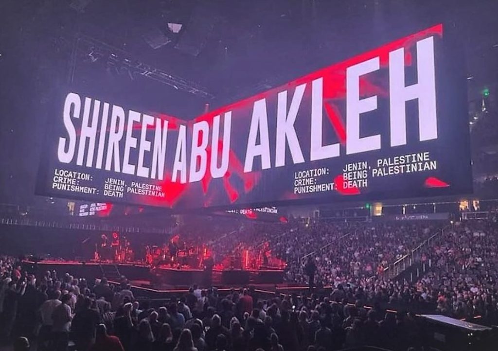 وكُتب على شاشة العرض الضخمة خلف الفرقة، “شيرين قتلت لأنها كانت فلسطينية”.