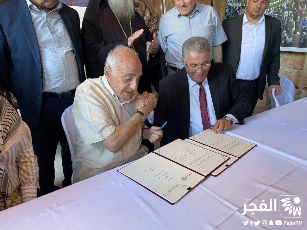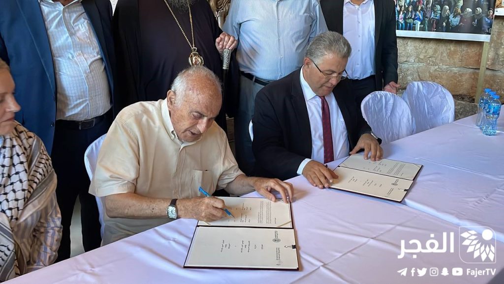 ووقع الاتفاقية منيب رشيد المصري ممثلا عن المؤسسة، وعن الجامعة رئيسها عماد أبو كشك، وذلك في بيت فلسطين بمدينة نابلس.