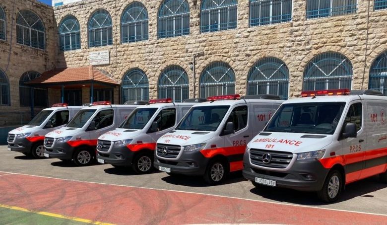 تلفزيون الفجر | تسلمت جمعية الهلال الأحمر الفلسطيني بمقرها العام في مدينة البيرة، اليوم الأربعاء، 21 سيارة إسعاف حديثة مجهزة بالمعدات الطبية.