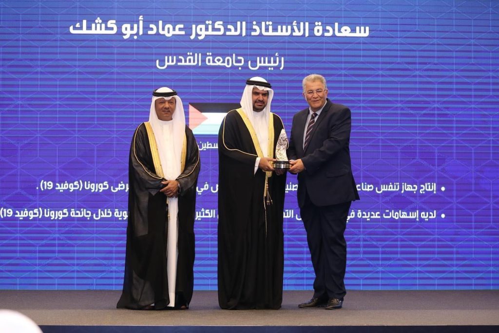 استحق رئيس جامعة القدس أ.د. عماد أبو كشك تكريمًا مقدمًا من جائزة الشيخ عيسى بن علي آل خليفة للعمل التطوعي (12)، لدور الجامعة في إنتاج جهاز تنفس صناعي طبي قابل للتصنيع محليًا، وسد النقص في الأجهزة لمعالجة مرضى كورونا “كوفيد 19” خلال الجائحة، إلى جانب إسهامات الدكتور العديدة في مجال العمل التطوعي.