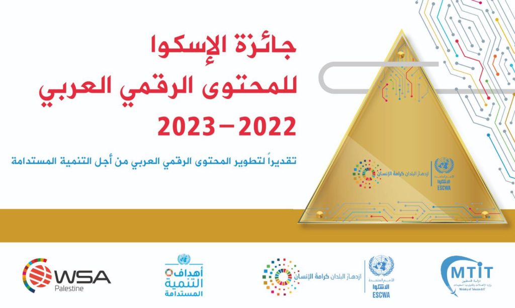 تعلن وزارة الاتصالات وتكنولوجيا المعلومات عن تمديد أوقات الترشيح للدورة الثانية لجائزة الإسكوا للمحتوى الرقمي العربي من أجل التنمية المستدامة المنظمة من قبل لجنة الأمم المتحدة الاجتماعية والاقتصادية لغربي آسيا (الإسكوا) وبالتعاون مع مؤسسة “جوائز القمة العالمية (WSA)”، حتى مساء يوم الاثنين 3\09\2022 .