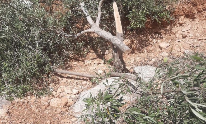 مستوطنون يقطعون أشجار زيتون غرب سلفيت
