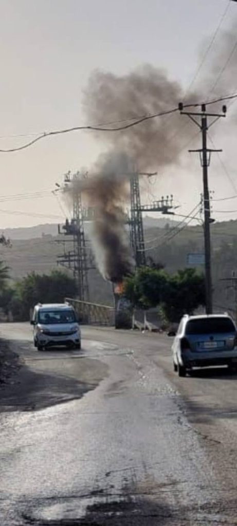 اشتعلت النيران في نقطة لجيش الاحتلال الاسرائيلي، على مدخل بلدة بيت أمر شمال الخليل، بعد استهدافه بزازجات حارقة.
