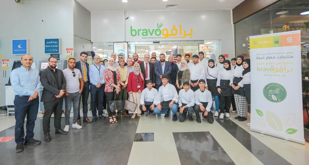 وجرى إطلاق المنتج الآمن في سوبرماركت برافو/ البالوع بحضور كل من ممثلين عن المؤسسات الشريكة؛ المهندس حيدر حجه مدير عام مؤسسة المواصفات والمقاييس الفلسطينية، والاستاذ عبد القادر خراز مدير دائرة الخضار من وزارة الزراعة، والسيد خالد جبارة المدير العام لشركة برافو التسويقية، والسيد نادر هريمات نائب المدير العام لمعهد الابحاث التطبيقية – أريج، والسيد أيمن الشعيبي مدير البرامج في منظمة كير الدولية إضافة إلى مشاركة ممثلين عن المؤسسات المهتمة والمزارعين المستفيدين من المشروع.