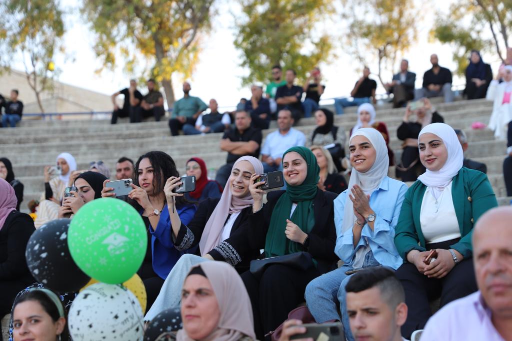 وتخلل الحفل فقرات فنية من التراث الفلسطيني، وتكريمًا لضيوف الشرف والحاصلين على منحة قطر، وختامًا تسلم الخريجون من درجتي البكالوريوس والماجستير شهاداتهم.