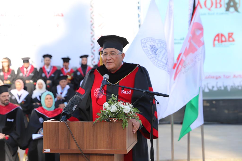 ورحب أ.د. عماد أبو كشك بحضور الحفل وضيوفه، موجهًا شكره الخاص للدكتور ليون بوتستين لدعمه الثابت لكلية القدس بارد منذ بداية شراكتها مع جامعة القدس، التي تدخل اليوم عامها الرابع عشر لتسطر بذلك تجربة مزدهرة وفريدة في تعليم الفنون الحرة في فلسطين، بحيث أصبح خريجوها اليوم قادة ناجحين في مجال الأعمال والصحافة وحقوق الإنسان والعلوم والتعليم.