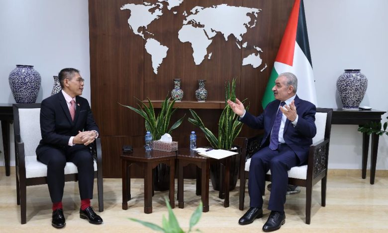 بحث رئيس الوزراء محمد اشتية، اليوم الثلاثاء، مع الوزير الثاني للخارجية والتعليم في جمهورية سنغافورة محمد مالكي بن عثمان، المستجدات السياسية وتعزيز العلاقات الثنائية بين البلدين.