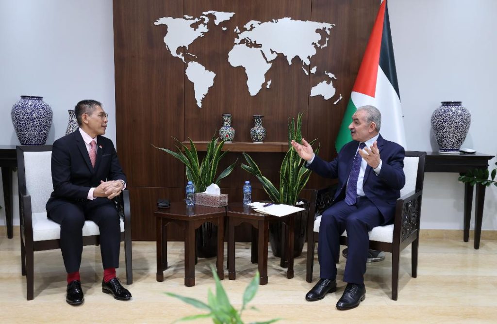 بحث رئيس الوزراء محمد اشتية، اليوم الثلاثاء، مع الوزير الثاني للخارجية والتعليم في جمهورية سنغافورة محمد مالكي بن عثمان، المستجدات السياسية وتعزيز العلاقات الثنائية بين البلدين.