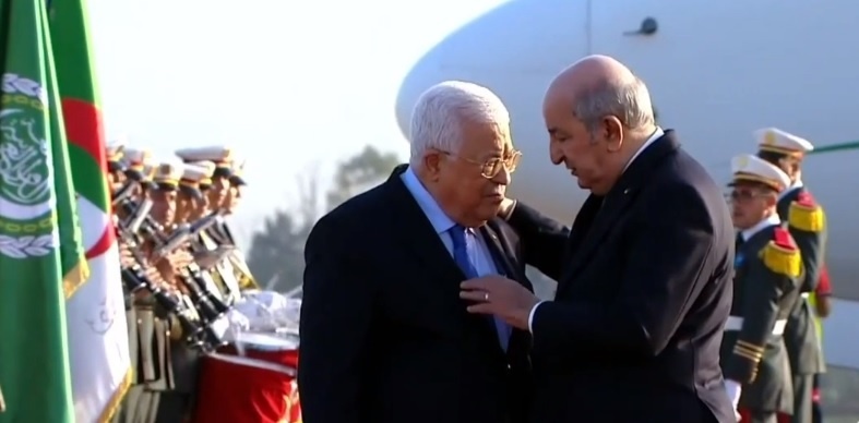 واستعرض الرئيسان عباس وتبون، حرس الشرف الذي اصطف لتحيتهما، وعُزف النشيدان الوطنيان الفلسطيني والجزائري.