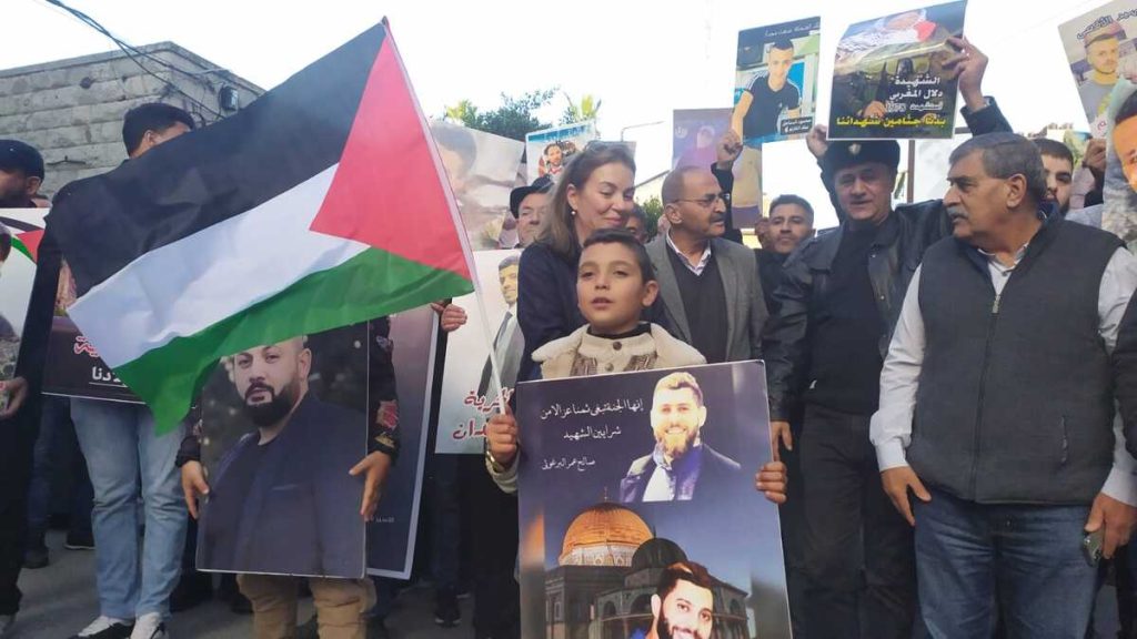 ورفع المشاركون وعددهم بالعشرات صور الشهداء المحتجزة جثامينهم، ولافتات تطالب بالإفراج عن جثامينهم، وتدويل قضيتهم، وهتفوا بهتافات تؤكد على عدالة قضيتهم، وهتافات للشهداء.