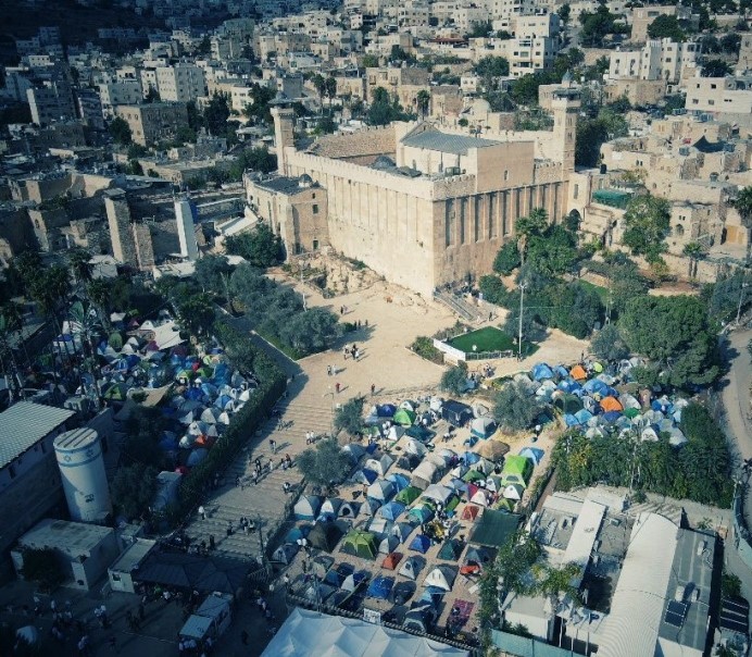 وقام مستوطنون بنصب عشرات من الخيام الصغيرة في ساحات المسجد الإبراهيمي، تمهيدا للمبيت فيها الليلة، عشية احتفالهم بعيد ما يسمى “سبت سارة”.