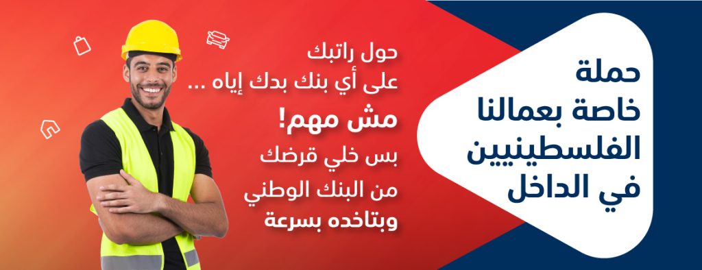 : أطلق البنك الوطني اليوم حملة مصرفية متخصصة للعمال الفلسطينيين داخل الخط الأخضر، والتي تمنح العمال مميزات استثنائية على الحسابات والقروض والبطاقات دون شرط تحويل الراتب إلى البنك الوطني.