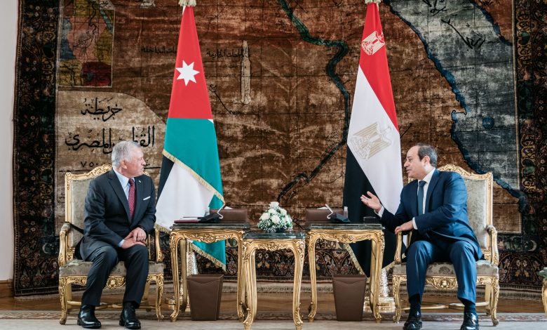 العاهل الأردني والرئيس المصري يؤكدان أهمية تكثيف الجهود لتحقيق السلام على أساس حل الدولتين