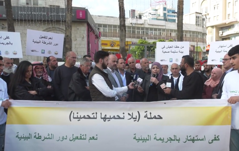 من وسط مدينة رام الله تعالت الأصوات للمطالبة بحماية البيئة وتفعيل دور الشرطة البيئية، خلال وقفة نظمها ائتلاف المؤسّسات الأهليّة الزراعيّة الفلسطينيّة (PAIC) ، أطلق خلالها المرحلة الثانية من حملة “يلا نحميها لتحمينا” في الضّفة الغربية والقدس وقطاع غزة، بالشراكة مع WE EFFECT ضمن برنامج العدالة البيئية والمناخية في فلسطين.