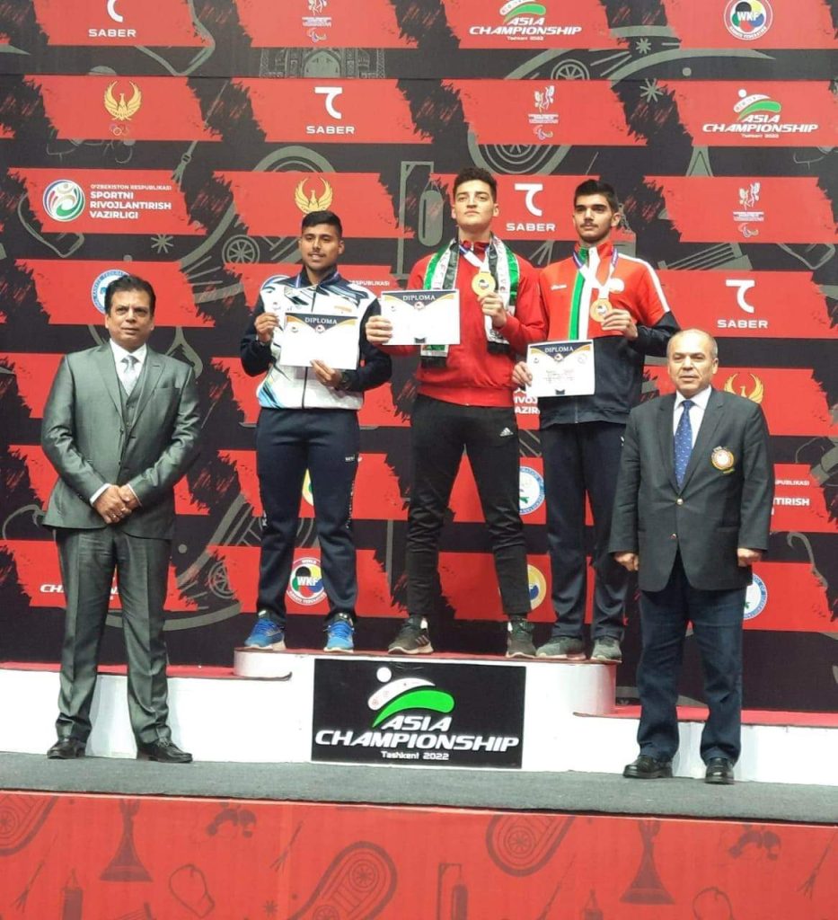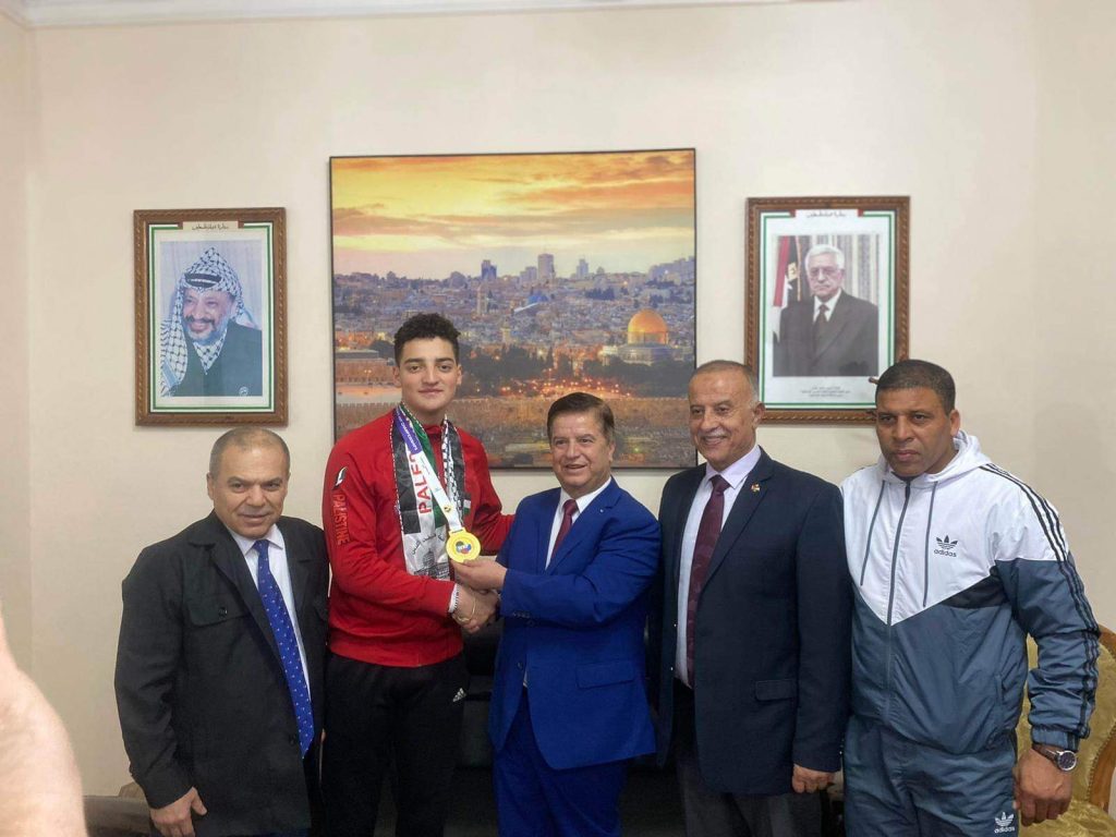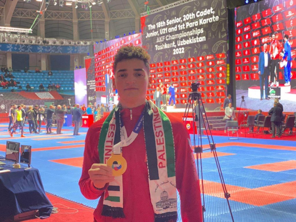 حقق منتخب فلسطين الذهب واعتلى منصات التتويج في اوزبكستان في بطولة آسيا للكراتيه بمشاركة عالية من دول متقدمة في اللعبة ، الا ان الاصرار وتحدي لاعبينا ولغتهم لتشريف فلسطين ورفع العلم الفلسطيني خفاقاً بإنجاز جديد يضاف لسجل الاتحاد وقادته ومدربيه ،وكان هذا التتويج للاعبينا لم يتأتى الا بدعم متواصل من رئيس الاتحاد الفلسطيني للعبة اللواء محمد البكري ، وبجهود رئيس الوفد ضرغام عبد العزيز ومدرب المنتخب القدير فايز ابو معمر الذي عمل جاهداً من خلال العزيمة التي كان يتحلى بها ولاعبيها في صورة الالتزام بالتدريبات والتقيد بالتعليمات، وجاء هذا الحصاد
