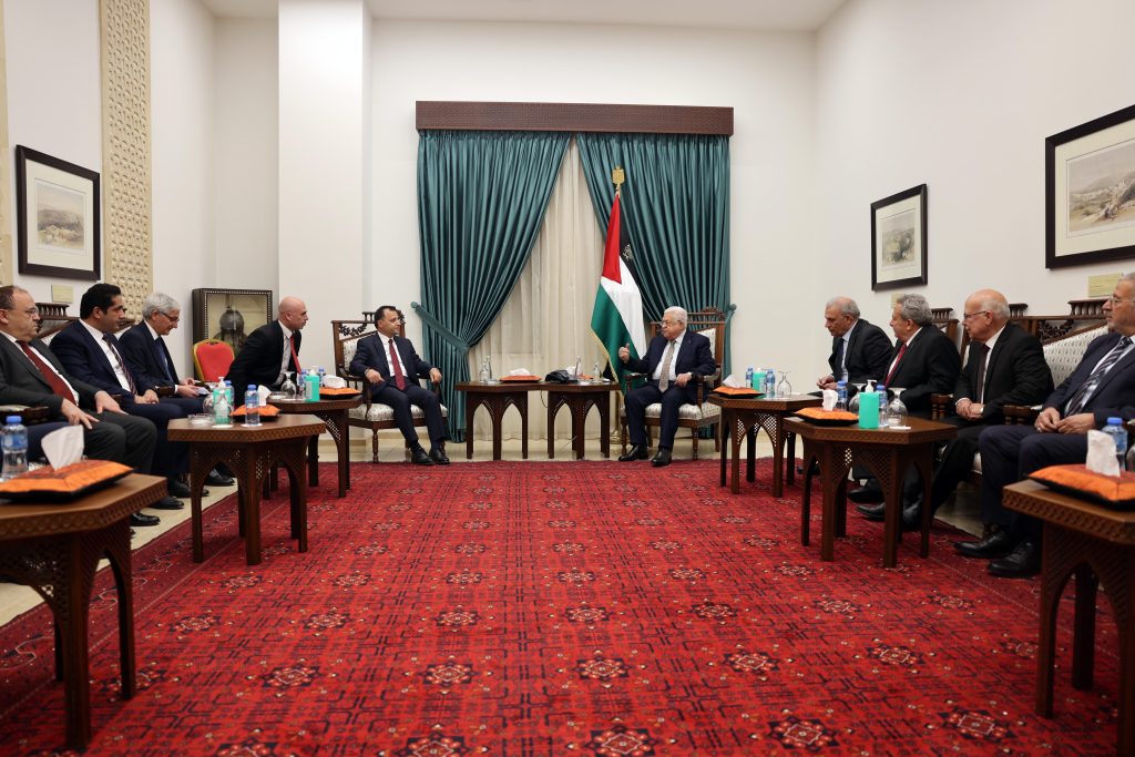استقبل رئيس دولة فلسطين محمود عباس، اليوم الجمعة، في مقر الرئاسة بمدينة رام الله، رئيس وأعضاء المحكمة الدستورية التركية، بحضور القنصل العام التركي في القدس.