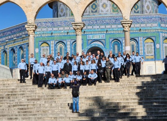 وأفاد شهود عيان أن 130 ضابطا ومن أفراد المخابرات اقتحموا المسجد الأقصى، وقاموا بجولة في عدة مناطق، وقاموا بتصوير عدة مناطق، وبعد الانتهاء التقطوا الصور التذكارية .