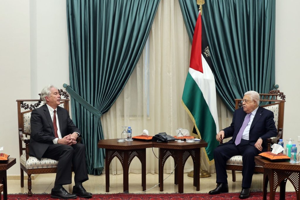 استقبل رئيس دولة فلسطين محمود عباس، مدير جهاز المخابرات العامة الأميركية وليم بيرنز، بمقر الرئاسة في مدينة رام الله.