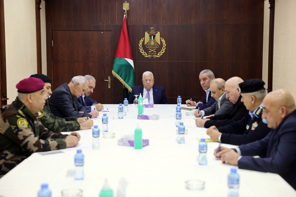 ترأس رئيس دولة فلسطين محمود عباس، اجتماعا لأجهزة وقوى الأمن الفلسطينية، لمتابعة آخر المستجدات والأوضاع الأمنية على الأرض نتيجة الاعتداءات والتصعيد الإسرائيلي المستمر على مخيماتنا وقرانا ومدننا الفلسطينية، وهي الاعتداءات التي تتحمل مسؤوليتها حكومة الاحتلال الإسرائيلي كاملةً لأنها تنتهك قرارات الشرعية الدولية، وما يتبعها من إجراءات أحادية الجانب تخالف الاتفاقيات الموقعة وتنتهك جميع المرجعيات والقوانين الدولية.