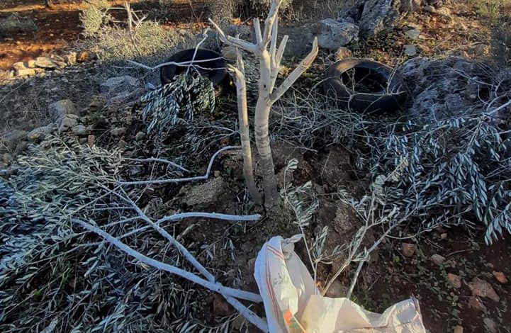 مستوطنون يقتلعون أشجار زيتون في ياسوف شرق سلفيت