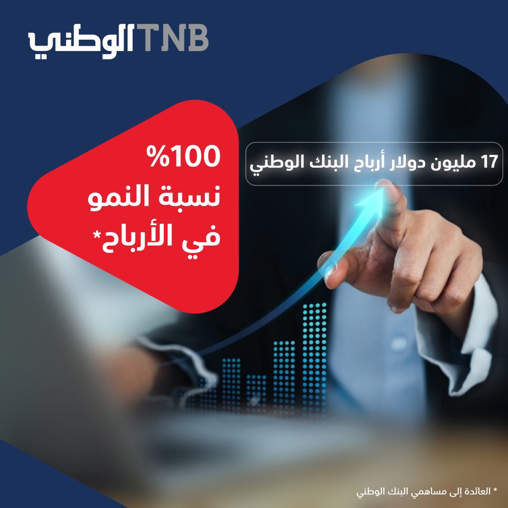 رام الله، 14 شباط 2023: أعلن البنك الوطني عن نتائج بياناته المالية للعام المالي المنتهي في 31 ديسمبر2022، حيث حقق أرباحا صافية عائدة لحقوق المساهمين بقيمة 17 مليون دولار أمريكي، مقارنة مع 8.5 مليون دولار أمريكي نهاية العام 2021، وبنسبة نمو بلغت 100%.