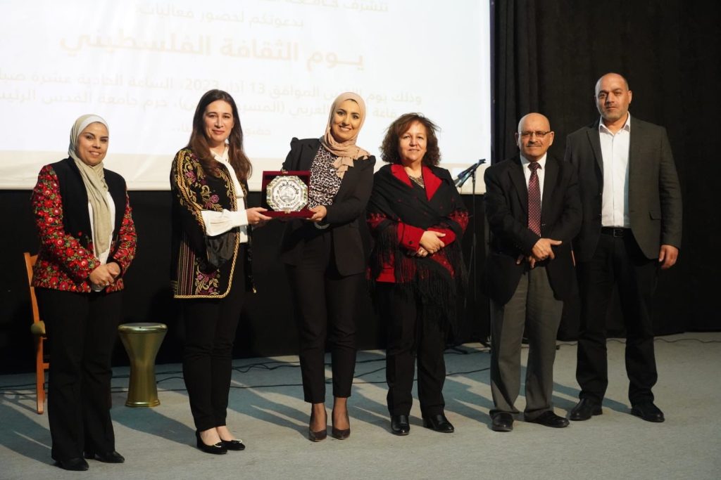 وتحدثت منسقة الصالون الأدبي في الجامعة أ. نيفلين ناصر عن فعاليات يوم الثقافة الهادفة لإظهار الهوية الفلسطينية وإبرازها، من خلال تسليط الضوء على المرأة الفلسطينية وحضورها في الرواية الشفوية في فقرات تتناول فن العمارة المقدسي والفيلم الفلسطيني والعزف الموسيقي والكورال، وهي تمثل جزءًا من هوية الفلسطينيين وواقعهم وثقافتهم الأصيلة.