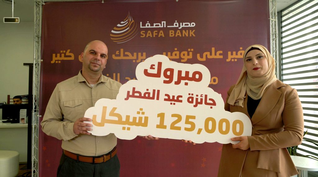 أعلن مصرف الصفا الإسلامي عن تسليم الجائزة النقدية الشهرية للرابح محمد عبد الامير احمد شهاب من مدينة البيرة، ضمن حملة حساب التوفير لهذا العام، والتي شملت جوائز مميزة خاصة بشهر رمضان والأعياد. وقد بلغت قيمة الجائزة الشهرية لشهر نيسان 125,000 شيكل، وهي خاصة بعيد الفطر السعيد.