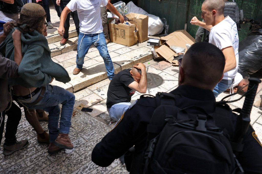 اعتدى مستوطنون بحماية قوات الاحتلال الإسرائيلي، اليوم السبت، على المواطنين في شارع الواد بالبلدة القديمة من القدس المحتلة.