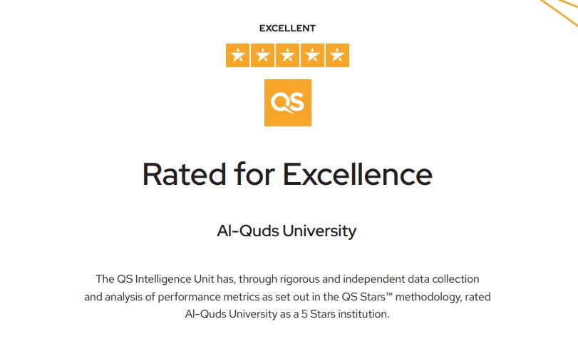 حصدت جامعة القدس تقييم متفوق مقداره 5 نجوم بحسب تصنيف مؤسسة QS العالمي للجامعات، اعتمادًا على أدائها المتميز في سبع فئات على الأقل من بين ما يلي: البحث والتدريس، والتوظيف، والتدويل، والتطوير الأكاديمي، والمرافق، والتعلم عبر الإنترنت، والابتكار، والفنون والثقافة، والشمولية، والمسؤولية الاجتماعية، والأثر البيئي، ومعايير التخصص.