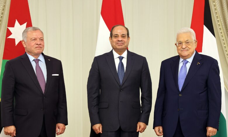 القمة الثلاثية تؤكد أن حل القضية الفلسطينية وتحقيق السلام العادل والشامل خيار استراتيجي وضرورة إقليمية ودولية