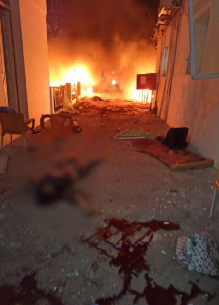وأظهرت مقاطع فيديو، مركبات الإسعاف وهي تنقل الشهداء والمصابين، بالإضافة إلى اندلاع حريق جراء القصف.