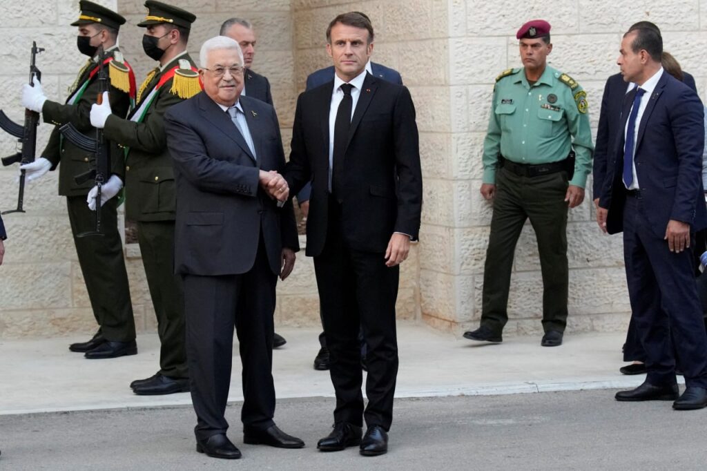 إننا نطلب من الجميع في هذه اللحظات الدقيقة، ونناشدكم فخامة الرئيس ماكرون، وأطراف مجلس الأمن، أن يتم وقف فوري لهذا العدوان على شعبنا، وتوفير الحماية الدولية العاجلة، وعقد مؤتمر دولي للسلام، والانتقال إلى الحل السياسي بدل الحلول العسكرية والأمنية، وذلك بتنفيذ حل الدولتين وفق الشرعية الدولية، الذي ينهي الاحتلال عن أرض دولة فلسطين بعاصمتها القدس الشرقية. قطاع غزة هو جزء من الأرض الفلسطينية المحتلة منذ العام 1967، ونرفض أية حلول جزئية أو أمنية لقطاع غزة، ونتمسك بالحل السياسي الشامل. وندعو في هذا الصدد، لتشكيل تحالف دولي من أجل صنع السلام.