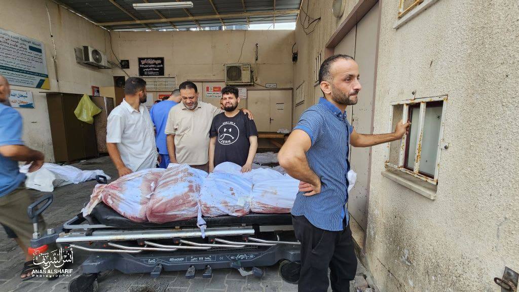 واستشهد 12 مواطناواصيب العشرات جراء قصف مسجد بلال بن رباح في مخيم النصيرات وسط قطاع غزة.