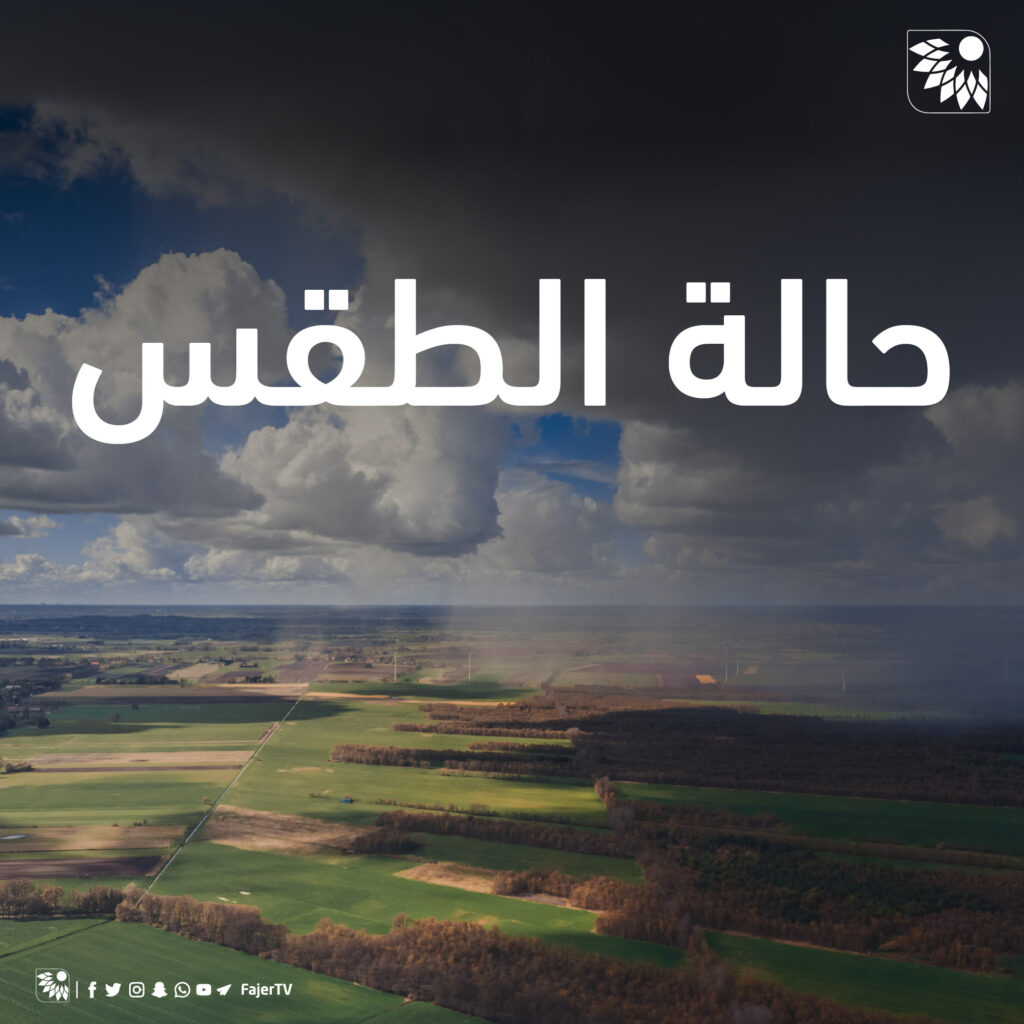 وغدا الجمعة: يكون الجو غائما جزئيا إلى صاف ويطرأ ارتفاع طفيف على درجات الحرارة، والرياح جنوبية غربية إلى شمالية غربية خفيفة إلى معتدلة السرعة والبحر خفيف ارتفاع الموج. والسبت: يكون الجو غائما جزئيا إلى صاف ولا يطرأ تغير على درجات الحرارة، والرياح جنوبية غربية إلى شمالية غربية خفيفة إلى معتدلة السرعة والبحر خفيف ارتفاع الموج.