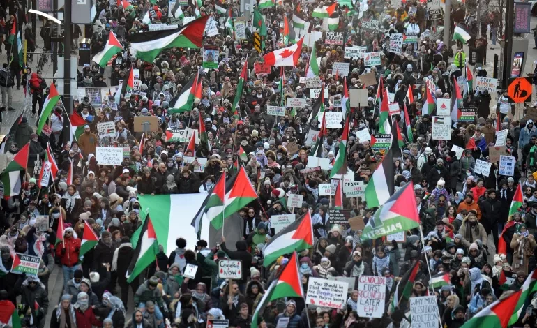 وطالب أكثر من ألف متظاهر بوقف إطلاق النار في غزة خلال المظاهرة التي نظمتها منظمة “الصوت اليهودي من أجل السلام”، التي تصف نفسها بأنها مناهضة للصهيونية.