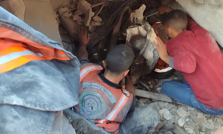 وأشار الدفاع المدني في غزة إلى أن طواقمه لم تتمكن من العمل في ظل القصف الإسرائيلي المتواصل على القطاع، واستهدافهم بشكل مباشر، حيث قصفت مدفعية الاحتلال طواقم الدفاع المدني والطواقم الطبية التي تحاول انتشال الشهداء والجرحى من تحت أنقاض المنزل في عدة مناطق من القطاع.