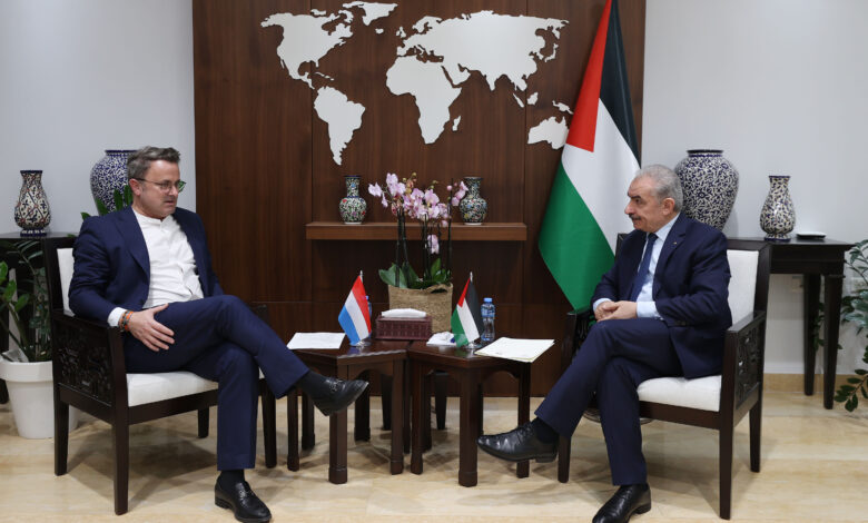 وشدد رئيس الوزراء، على أنه يجب العمل بشكل جدي على إيجاد أفق سياسي يشمل كل الأراضي الفلسطينية، وإنهاء الاحتلال، والاعتراف بدولة فلسطين من لوكسمبورغ وجميع الدول المؤمنة بحل الدولتين، وتجسيد إقامة الدولة الفلسطينية على حدود عام 1967 وعاصمتها القدس.