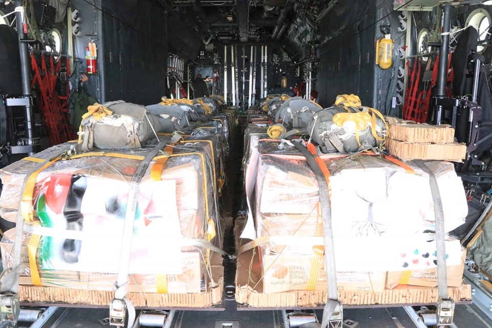 فذت القوات المسلحة الأردنية، مساء السبت، إنزالين جويين بطائرتين تابعتين لسلاح الجو الملكي لمساعدات غذائية تستهدف عدداً من المواقع في شمال قطاع غزة، وبمشاركة أولى للولايات المتحدة الأميركية بثلاثة إنزالات نفذتها بثلاث طائرات تابعة لسلاح الجو الأميركي على جنوب قطاع غزة.