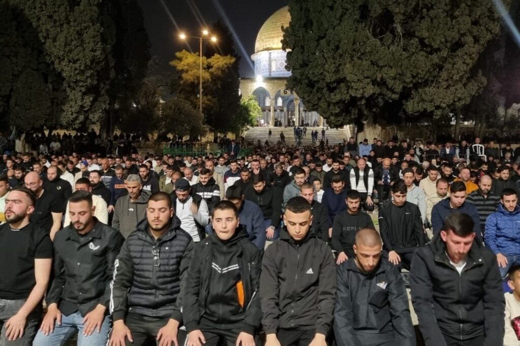 أدى آلاف المواطنين صلاتي العشاء والتراويح في رحاب المسجد الأقصى المبارك، رغم قيود وتضييقات الاحتلال الإسرائيلي.