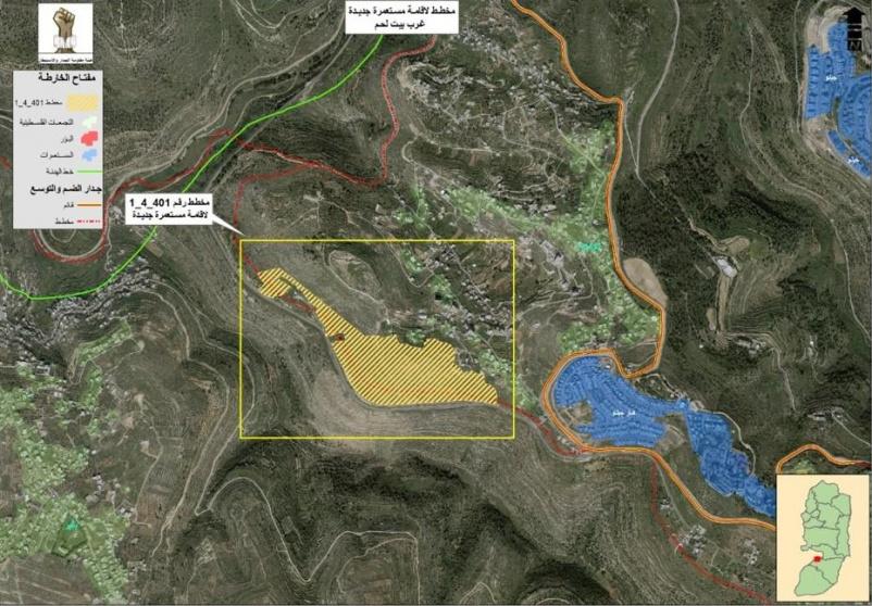 وأضاف أن هذا الأمر قد تكرر أيضاً في محافظة بيت لحم، وتحديداً في حزيران عام 2022، عندما تم طرح مخطط هيكلي جديد للإيداع من أجل توسعة مستوطنة “هار غيلو” المقامة على أراضي المواطنين في محافظة بيت لحم، وحمل المخطط حينها الرقم 1\4\401 وكان يهدف لبناء 952 وحدة استيطانية جديدة، ليتبين أن دولة الاحتلال تخفي نية لبناء مستوطنة جديدة باسم “كارميل” لعزل بلدتي الولجة وبتير في محافظة بيت لحم.