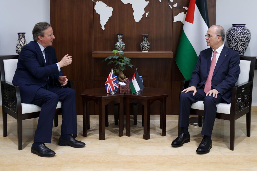 بحث رئيس الوزراء وزير الخارجية محمد مصطفى، اليوم الأربعاء، مع وزير خارجية بريطانيا ديفيد كاميرون، أهمية تعزيز الجهد الاغاثي والإنساني في قطاع غزة، ووقف التصعيد واعتداءات المستوطنين واقتحامات جيش الاحتلال للمناطق الفلسطينية، ودعم جهود الحكومة في الإصلاح المؤسسي الشامل.